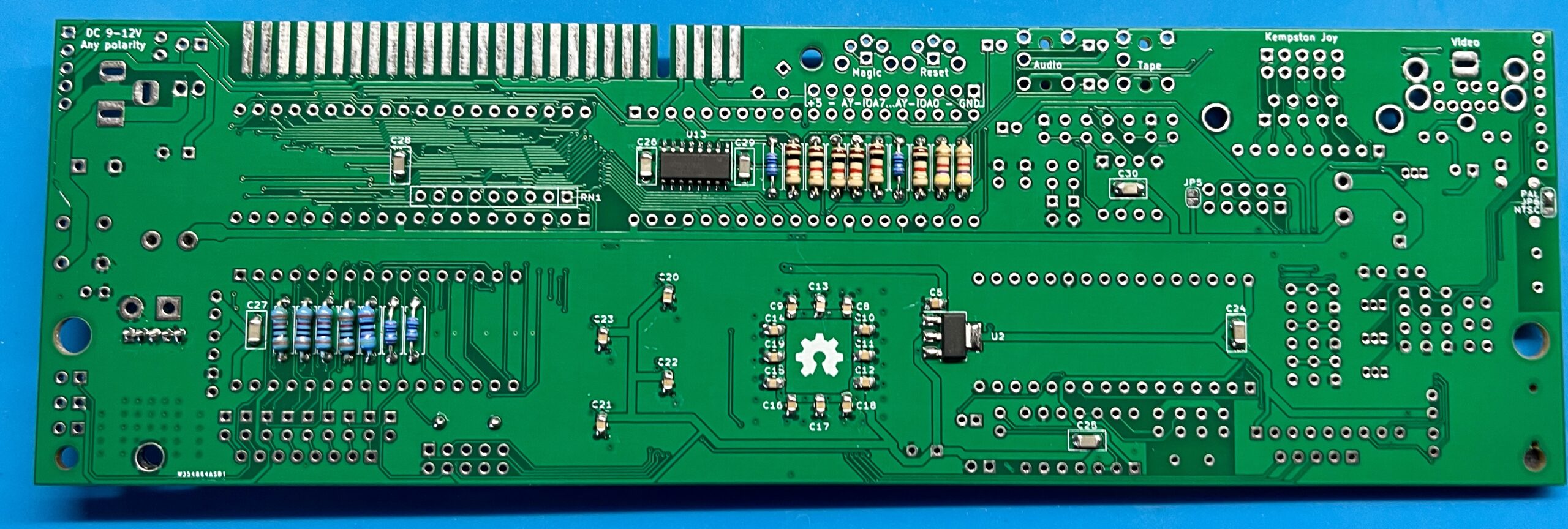 Súhlasím s Martinom aj Mikeom, že doska je navrhnutá prinajmenšom zvláštne. Nejaké THT súčiastky sa osádzajú aj odspodu dosky a väčšina rezistorov je osadená na stojáka. Bolo by naozaj lepšie použiť väčšie SMD púzdra, lebo sa stále ľahko osádzajú a vyzeralo by to lepšie. Ja som to osadil kompromisne. Rezistory odspodu som osadil podľa plánu THTčkovými, keramické kondenzátory som však nahradil SMDčkovými a rezistorové pole som osadil zhora. Bolo treba zapižlikať pilníkom päticu pre CPU aby sa to tam vošlo, ale vyzerá to zásadne lepšie.